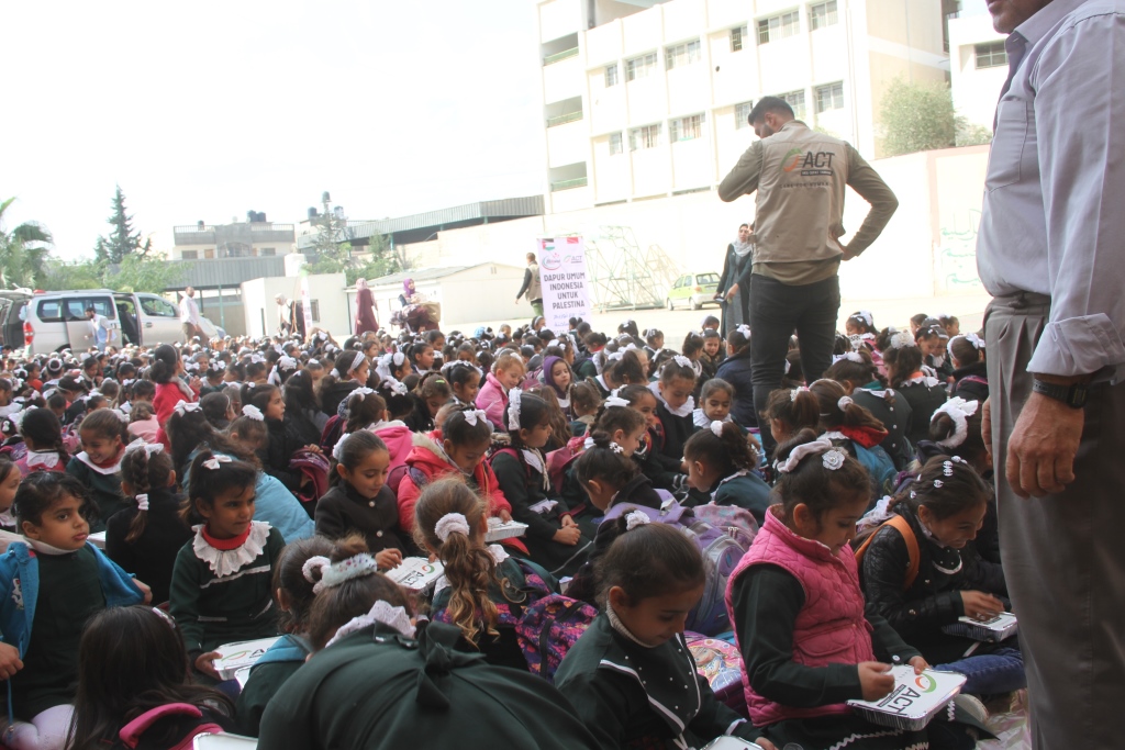 شهدت مدرسة معاوية بن أبي سفيان الأساسية للبنات، بمديرية التربية والتعليم في شمال غزة، توزيع وجبات غذائية لطالبات المدرسة، وذلك بتمويل إندونيسي كريم، وتنفيذ جمعية رواد (ACT)، تحت إشراف قسم الصحة المدرسية بالمديرية.