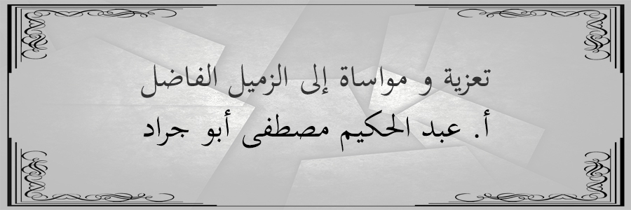 تعزية و مواساة إلى الزميل الفاضل "أ. عبد الحكيم أبو جراد"