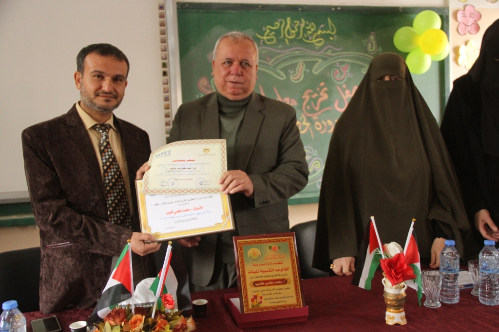و في ختام الدورة المعتمدة من المعهد الوطني سلّم أ. أبو حصيرة الشهادات للمعلمات المشاركات، كما سلم مدرب الدورة أ. كلوب شهادة شكر وتقدير، تقديراً لجهوده الكبيرة في إنجاح الدورة و تنفيذ العديد من البرامج و الأنشطة المميزة.