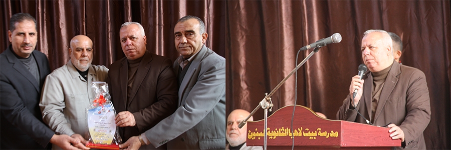 جاء ذلك خلال الحفل الذي أقيم بمدرسة بيت لاهيا الثانوية للبنين، بعنوان: "حفل الوفاء لرجل العطاء" بحضور مدير التربية والتعليم أ. محمود أبو حصيرة، ومديري الدائرتين الإدارية والفنية أ. منير أبو زعيتر، وأ. موسى شهاب، ونائب مدير المدرسة أ. أحمد أبو نومر، وعدد من رؤساء الأقسام بالمديرية وذوي المعلم المحتفى به.