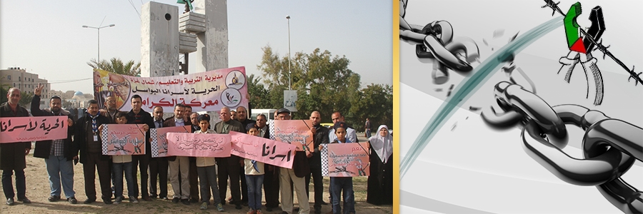 نظم العاملون في مديرية التربية والتعليم بشمال غزة، وقفة مساندة تضامناً مع الأسرى، أمام مبنى مديرية التربية والتعليم في شمال غزة، دعوا من خلالها المجتمع الدولي إلى تحمل مسؤولياته لوقف الهجمة الشرسة التي تقودها قوات الاحتلال على الأسرى داخل السجون رافعين لافتات الحرية للأسرى الفلسطينيين.