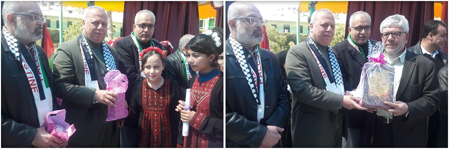 وحضر الاحتفال مدير التربية والتعليم أ. محمود أبو حصيرة، ومجموعة من رؤساء الاقسام، ومديرة المدرسة أ. سعدة حسنين، وشخصيات من المجتمع المحلي.