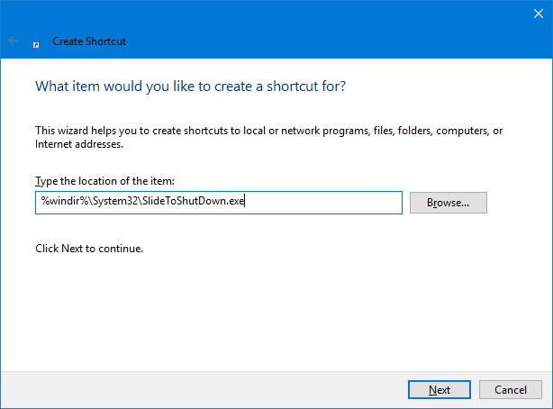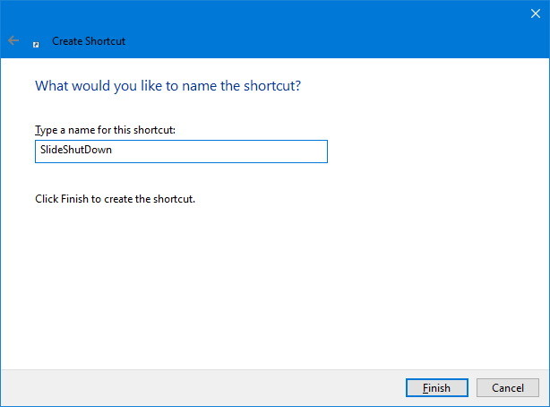 أدخل اسمًا وصفيًا للاختصار (على سبيل المثال، SlideShutdown).