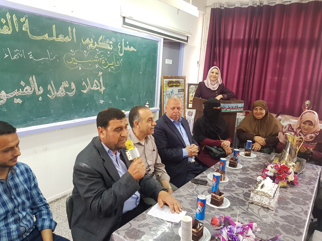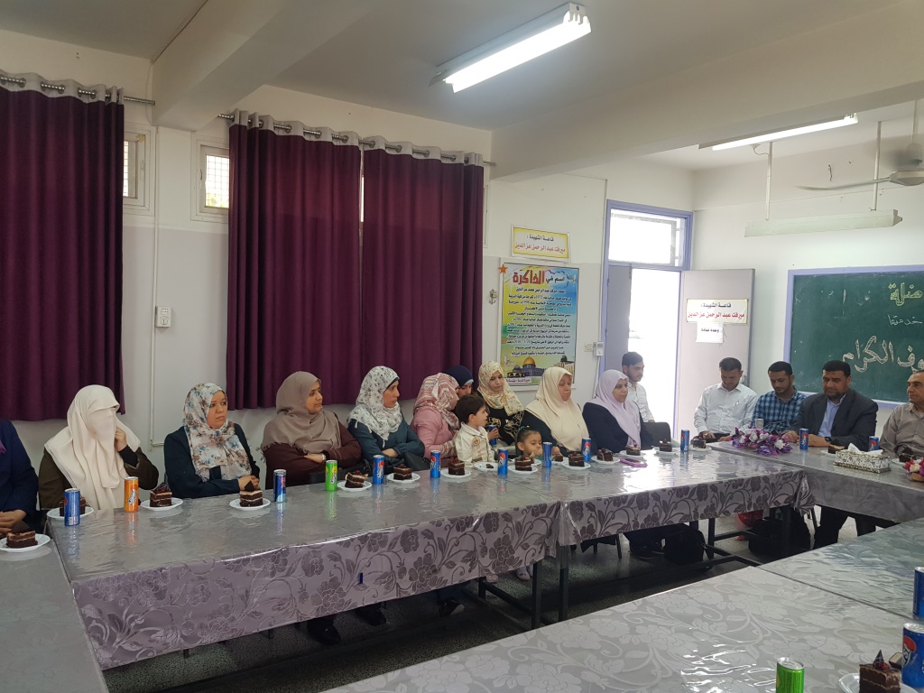 و في كلمته أشاد أ. ابو حصيرة بالرسالة السامية التي قدمتها المعلمة المحتفى بها، على مدار سنوات خدمتها الحافلة بالتضحية و البذل و العطاء، والعمل في أصعب الظروف في ظل انقطاع و تأخر و تقليص الرواتب.