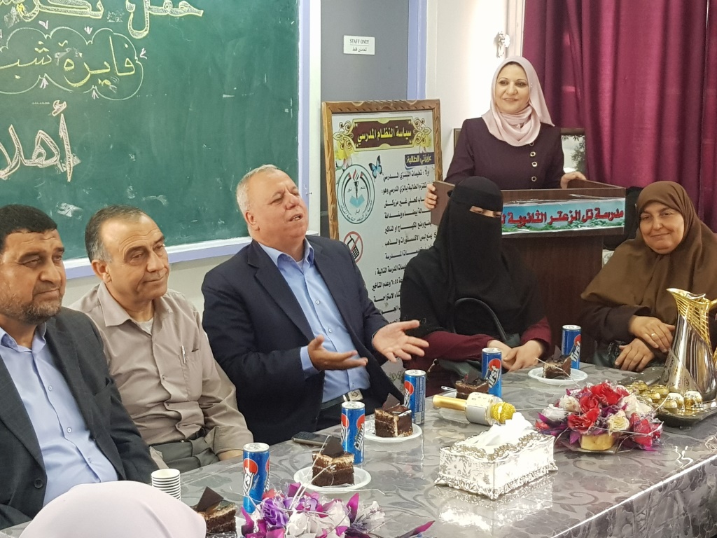 كرّمت مدرسة تل الزعتر الثانوية للبنات، المعلمة أ. فايزة شبير على ما قدمته من خدمات في مسيرتها التعليمية، وشارك في التكريم مدير التعليم أ. محمود أبو حصيرة، و المدير الفني أ. موسى شهاب، ورئيس قسم الأنشطة أ. محمد كلوب، ومجموعة من العاملين في المديرية، وعن نقابة المعلمين شارك نقيب معلمي شمال غزة أ. محمد صلاح وذوي المحتفى بها وشخصيات من المجتمع المحلي.