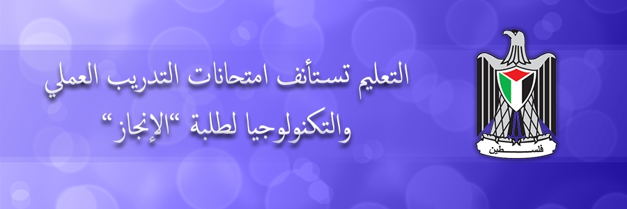 قررت لجنة الامتحانات العامة في وزارة التربية والتعليم استئناف عقد امتحانات التدريب العملي لطلبة الثانوية العامة "الإنجاز" للفروع المهنية في المحافظات الجنوبية، وذلك اعتباراً من يوم غد الثلاثاء ولمدة ثلاثة أيام متتالية.