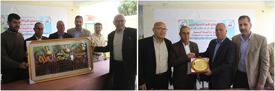 جاء ذلك خلال الحفل الذي أقامته مدرسته، بحضور مدير التربية والتعليم أ. محمود أبو حصيرة، ومدير الدائرة الإدارية أ. منير أبو زعيتر، ورئيس قسم العلاقات العامة والإعلام أ. إسماعيل البياري، ورئيس قسم الأنشطة الطلابية أ. محمد كلوب، ومدير المدرسة أ. جميل قاسم، وذوي المعلم المحتفى به.
