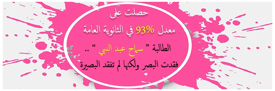 بعزيمة وإصرار أذهلا من حولها، ورغم كل الصعوبات التي واجهتها في حياتها، وعلى مدار سنوات الدراسة، استطاعت سماح أن تثبت للجميع انها على قدر التحدي والمسؤولية، وأنها لن تكون على هامش الحياة، ما دامت تمتلك ارادة وعزيمة تناطح الجبال، كيف تستسلم وهى من أصحاب الهمم العالية ... إنها الطالبة سماح عبد النبي التي قالت بمليء جوارحها لا للمستحيل، متحدية بذلك إعاقتها البصرية ببصيرة يفتقدها الكثيرون، ولتحصد أعلى الدرجات في شهادة الثانوية العامة...