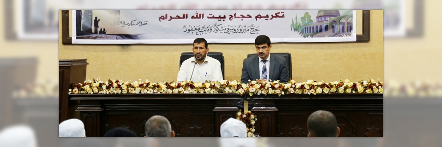من جانبه ربط د. اليازوري خصوصية حجاج بيت الله الحرام لأهل فلسطين برابط العقيدة بين بيت المقدس وبيت الله الحرام مستدلاً بذلك بآيات من القران الكريم مقدماً التهاني والدعوة من الله بالقبول.