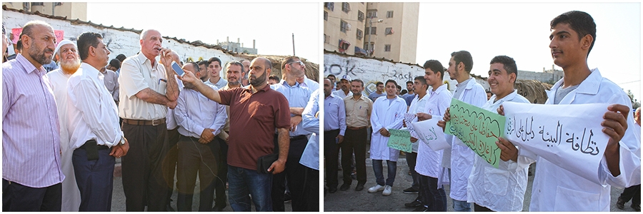 ورفع المشاركون في الوقفة لافتات منددة بإقامة المكب بالقرب من المدرسة ومنازل المواطنين من بينها: "لا تقتل البيئة كي لا تقتلك"، "لا تجعلوا حياتنا جحيما لا يطاق"، "حفاظا على حياتنا يجب أن يُغلق المكب"، "لا تكونوا سببا لهروبي من المدرسة"، "ارحموا مرضانا وشيوخنا وأطفالنا من الموت المحقق".