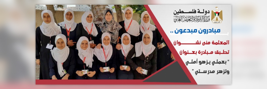 طبقت المعلمة منى نشوان نائب مدير مدرسة هايل عبد الحميد الثانوية للبنات في مديرية تعليم شمال غزة مبادرة خلاقة بعنوان "بعملي يزهو أملي وتزهر مدرستي"، ساهمت فيها بتطوير واقع العملية التعليمية والأداء في المدرسة.