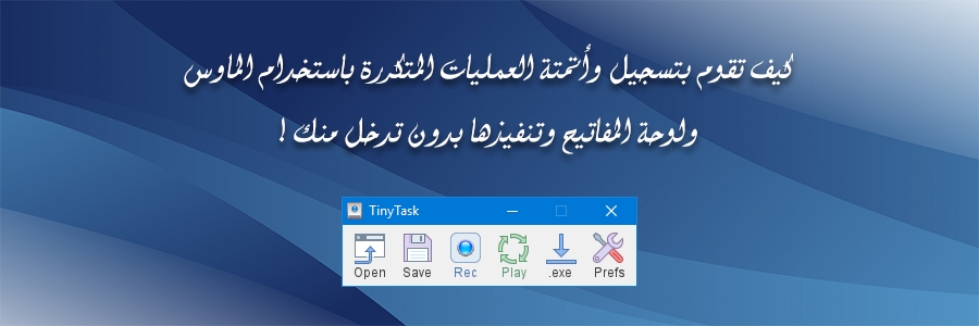 هذه العملية يقوم بها برنامج صغير يسمى TinyTask هو برنامج يقوم لتسجيل عمليات آلية صغيرة يمكنها تنفيذ أنشطتك اليومية أو الأنشطة الأكثر مللا على حاسوبك. إنه مجاني وسهل الاستخدام ويحقق هدفه جيدًا. كل هذا في بحجم 35KB!