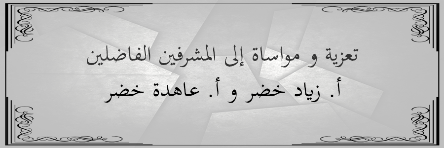 تعزية و مواساة إلى المشرفين "أ. زياد خضر" و "أ. عاهدة خضر"