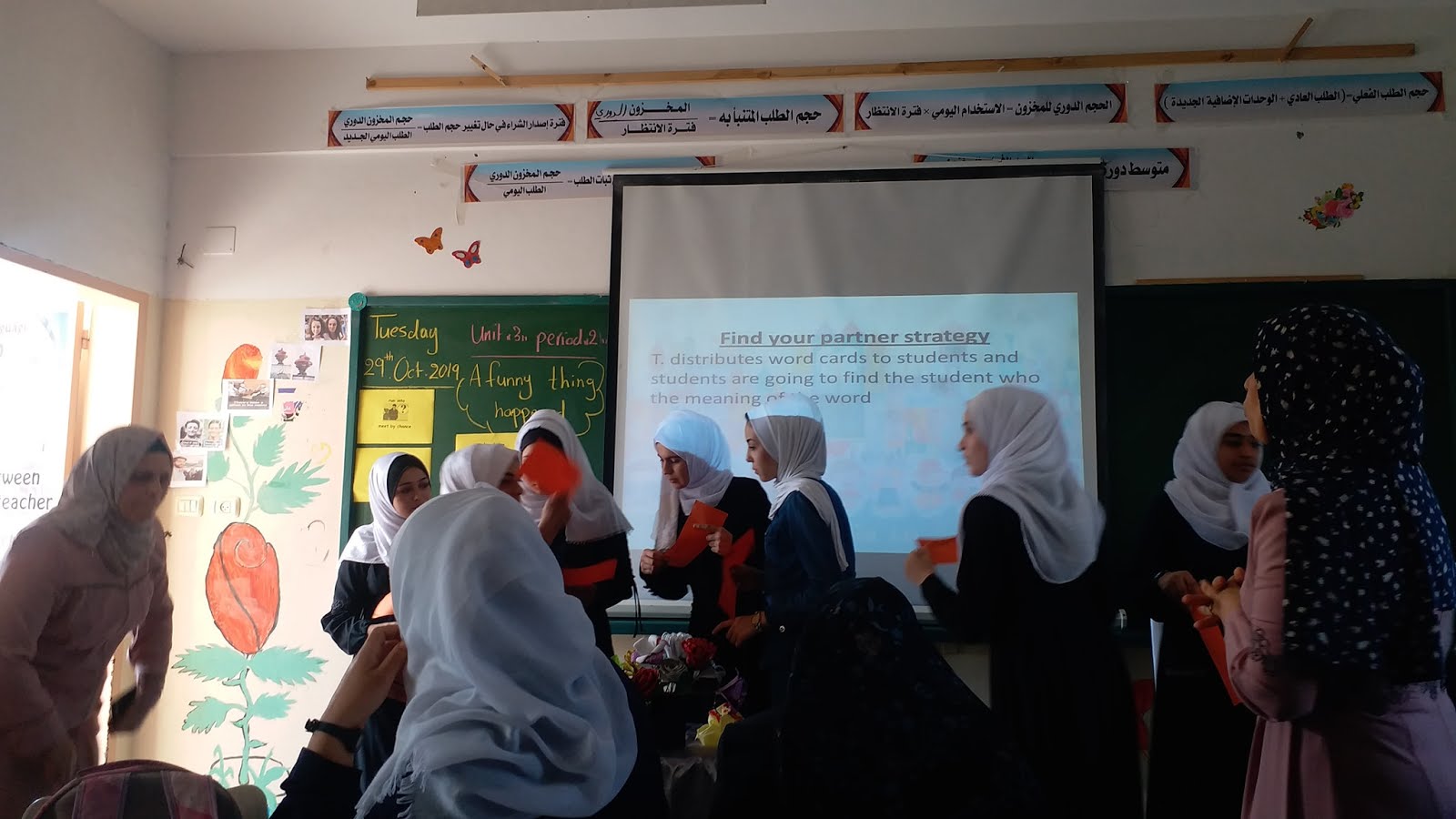 و استخدمت المعلمة نصار مجموعة من الاستراتيجيات و الألعاب الشيقة و هي البحث عن الشريك، و الأركان الأربعة، و جكسو، و القبعات الست، وسلة المعرفة، والرؤوس المرقمة، و دولاب الحظ، و البحث عن الكنز و اختتمت المعلمة الدرس بلعبة السلم و الثعبان.
