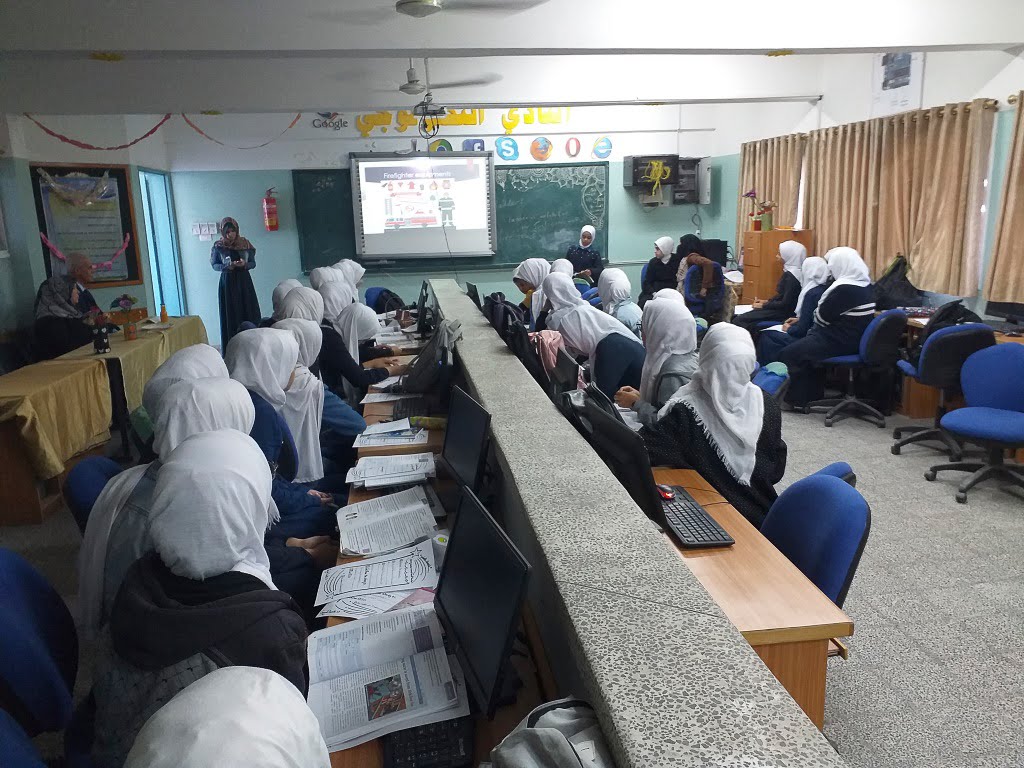 بحضور مدير التربية والتعليم في شمال غزة أ. نبيل العرابيد، ورئيس قسم العلاقات العامة والإعلام أ. اسماعيل البياري ومديرة المدرسة أ. كريمة المقيد، ومعلمة الفيزياء أ. وئام العمصي، ومعلمة اللغة الانجليزية أ. ربا أبو جاسر، وعدد من المعلمات.