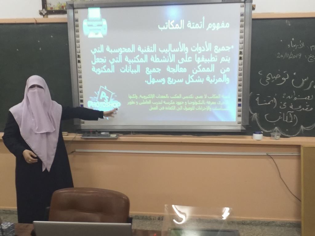 وشمل الدرس التعرف على الإدارة الآلية، واستنتاج مفهوم أتمتة المكاتب، وتوضيح عناصر أتمتة المكاتب، وتطبيق احتياجات مكتب أتمتة المكعب المدمج، وتعدد احتياجات مكتب أتمتة.
