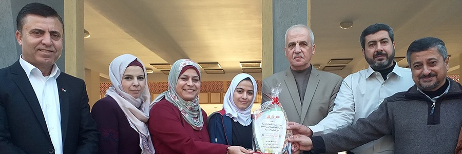 كرّم مدير التربية والتعليم في شمال غزة أ. نبيل العرابيد، الطالبة هلا علاء فرحات، من مدرسة شادية أبو غزالة الثانوية للبنات؛ لفوزها بالمركز الثامن على فلسطين، والثالث على قطاع غزة في مسابقة تحدي القراءة العربي التي عقدت مؤخرا بدولة دبي في الإمارات العربية المتحدة.