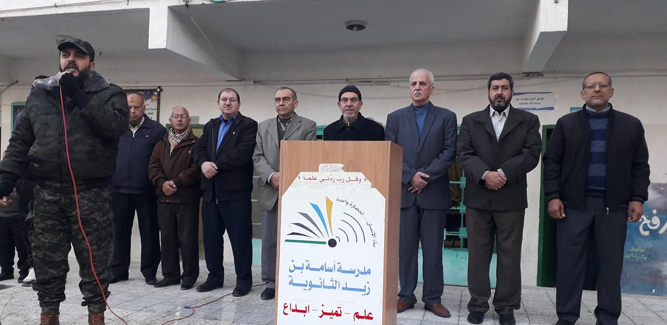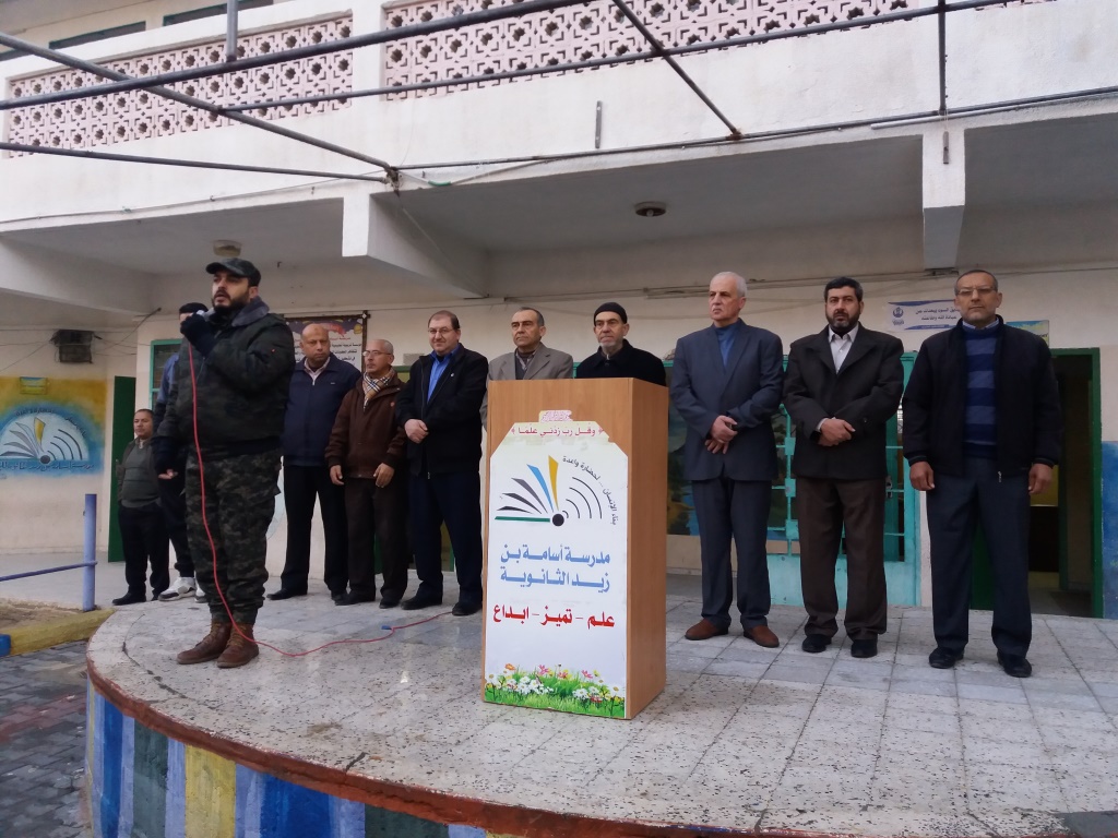 افتتح مدير التربية والتعليم في شمال غزة أ. نبيل العرابيد، الفصل الدراسي الثاني للعام الدراسي 2019/2020، بمدرسة أسامة بن زيد الثانوية للبنين، مدرسة حمزة بن عبد المطلب الثانوية للبنات، ومدرسة جباليا الأساسية "ب" للبنات.