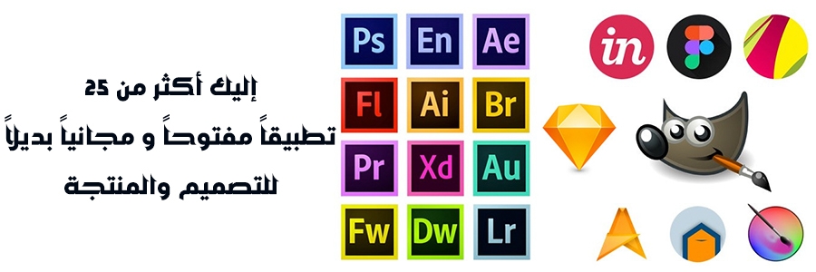 تمكن أحد المصممين من عمل قائمة لعدد من هذه التطبيقات والبرامج و الأدوات المجانية و المفتوحة للمستخدمين و الذين يبحثون عن أدوات رخيصة أو مجانية للقيام بأعمال ذات جودة جيدة و بثقة و بتكاليف أقل مع معلومة ما هي البديل عنه تلك التطبيقات.