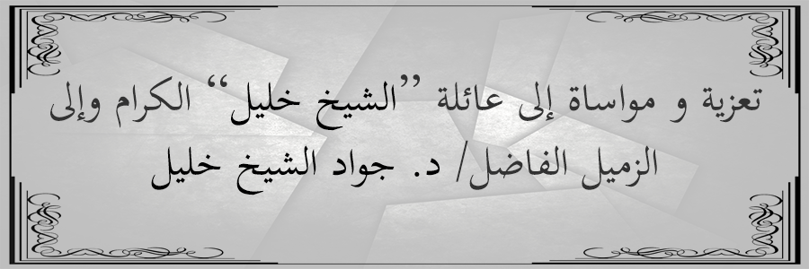 تعزية و مواساة للزميل الفاضل الدكتور/ جواد الشيخ خليل