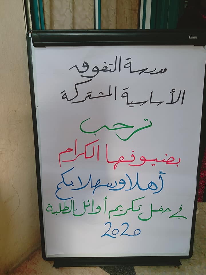 والمشرفين التربويين أ. أيمن ياسين، و أ. تهاني الفار، و أ. وفاء حجازي، و أ. خضرة جحجوح، ومديرة المدرسة أ. زينات القرم، وعدد من أولياء الأمور والمجتمع المحلي، ومعلمي ومعلمات المدرسة.