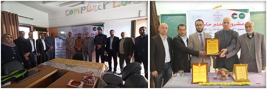 فيما قدّم م. علي، نبذة مختصرة عن الجمعية وأنشطتها وبرامجها، والتي كان آخرها مشروع تطوير وتأهيل مختبر حاسوب مدرسة تل الربيع، شاكرا الأخوة الداعمين للمشروع الأخوة في مؤسسة الندوة العالمية للشباب الإسلامي، على جهودهم العظيمة في تمويل هذا المشروع الطيب ومشاركتهم للجمعية في تنفيذ العديد من المشايع الخيرية الخاصة بالندوة في قطاع غزة، سائلا المولى عز وجل أن يجزيهم الله خير الجزاء.