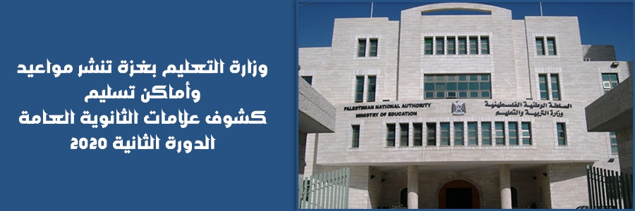 أعلنت وزارة التربية والتعليم العالي بغزة بأنه سيتم البدء في توزيع كشوف علامات الطلبة الناجحين في الثانوية العامة الدورة الثانية 2020 اعتباراً من يوم السبت المقبل 12/9/2020. حيث تم تحديد مواعيد توزيع كشوف العلامات بالجدول المرفق من قبل المديريات. وحفاظاً على سلامة الطلبة والعاملين في ظل وجود فيروس كوفيد-19، حددت وزارة التعليم إجراءات السلامة والوقاية أثناء تسلم كشوف العلامات على النحو التالي: