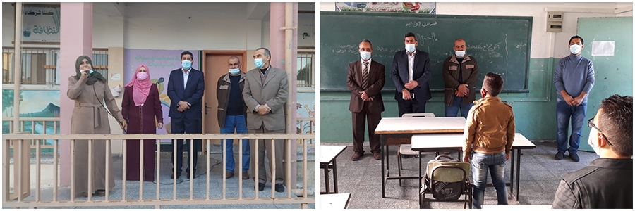 وتفقد كل من مدير الدائرة الإدارية أ. جواد صالحة، ومدير الدائرة الفنية أ. موسى شهاب، وعضوي لجنة المتابعة في المديرية أ. شلايل، وأ. توفيق السيد سليم، سير العمل في مدرستي معاوية بن أبي سفيان الأساسية للبنات، وعمر بن الخطاب الأساسية للبنين، وهما من المدارس التي شملها قرار العودة الأخير.