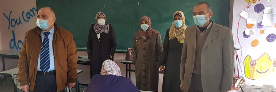 وشارك أ. حرز الله في جولته التفقدية، مدير الدائرة الفنية أ. موسى شهاب، ورئيس قسم الامتحانات أ. إياد النونو.