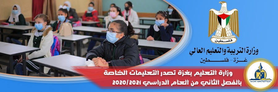 أصدرت وزارة التربية والتعليم العالي بغزة التعليمات الخاصة بالفصل الثاني من العام الدراسي2020/2021م والذي سيبدأ بتاريخ 27/2/2021.