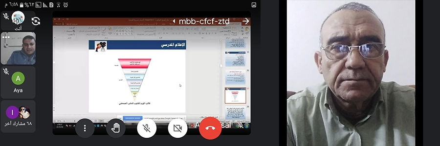 وافتتح الدورة التي نُظّمت عن بُعد، عبر تقنية google meet، مدير الدائرة الفنية أ. موسى شهاب، ومدير دائرة العلاقات العامة والإعلام أ. مدحت الزطمة، ورئيس قسم العلاقات العامة بالوزارة أ. علاء فيصل، والذي بدأ أولى محاضرات الدورة، بالإضافة إلى منسق الإعلام المدرسي بالمديرية أ. عطية الحاج أحمد.
