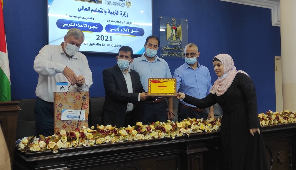 كرمت وزارة التربية والتعليم العالي، رئيس قسم العلاقات العامة والإعلام بمديرية شمال غزة، والعاملين في القسم لجهودهم في إبراز إنجازات المديرية والوزارة إعلامياً، ودورهم في إنجاح مشروع منسق الإعلام المدرسي، وكذلك الفائزين في مسابقة نجوم الإعلام المدرسي، بالمديرية، وسائر المديريات، وذلك خلال احتفال أُقيم بمقر الوزارة بغزة.