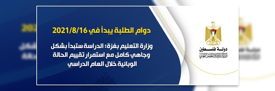 وقالت الوزارة في تصريح صحفي: "يبدأ دوام الهيئات التدريسية يوم السبت الموافق 14/08/2021م، ودوام الطلبة يوم الاثنين الموافق 16/08/2021م".
