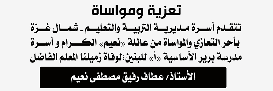 تعزية و مواساة لوفاة الزميل الأستاذ الفاضل/ عطاف رفيق مصطفى نعيم