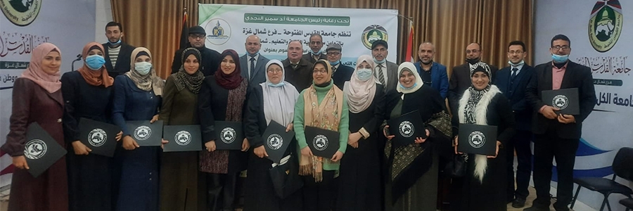 نظمت جامعة القدس المفتوحة - فرع الشمال، ومديرية التربية والتعليم في شمال غزة، يوماً دراسياً بعنوان "التحديات التي تواجه تعلم وتعليم اللغة الإنجليزية في ظل جائحة كورونا"، وذلك تحت رعاية رئيس الجامعة أ. د. سمير النجدي، وبحضور مدير التربية والتعليم أ. أشرف حرز الله، وحضور لافت من المديرية، وأعضاء الهيئتين الأكاديمية والإدارية في الجامعة، والمهتمين، وطلبة الجامعة.