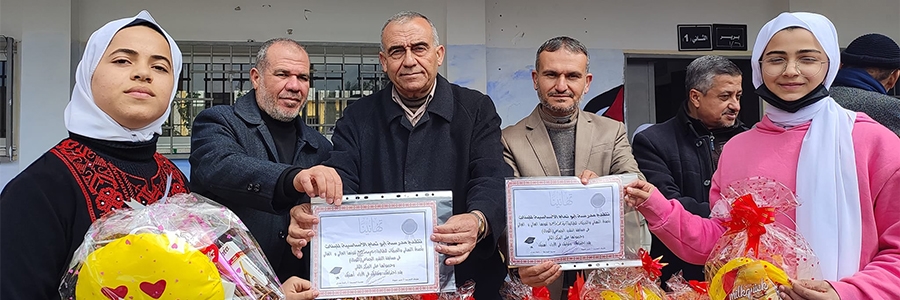 كرم مدير الدائرة الفنية الفني أ. موسى شهاب، الطالبات الفائزات بالمسابقات اللامنهجية التي نظمها قسم الأنشطة الطلابية، وذلك في احتفالية حضرها كل من: رئيس قسم الاشراف أ. محمد أبو ندي، ورئيس قسم الأنشطة الطلابية أ. محمد كلوب، ورئيس قسم العلاقات العامة والتعاون الدولي أ. اسماعيل البياري، ورئيس شعبة الكشافة أ. علاء فرحات، ومديرة المدرسة أ. رائدة بدران.