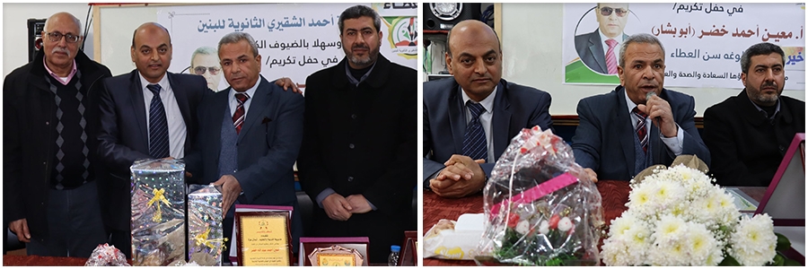 كرّمت مديرية التربية والتعليم في شمال غزة، المربّي الفاضل أ. معين أحمد خضر لبلوغه سن التقاعد الوظيفي ونهاية خدمته في سلك التربية والتعليم، بعد رحلة عطاء امتدت إلى (26) عاماً اختتمها في مدرسة أحمد الشقير الثانوية للبنين، وكان مثالاً للتقاني والإخلاص في خدمة أبناء وطنه.