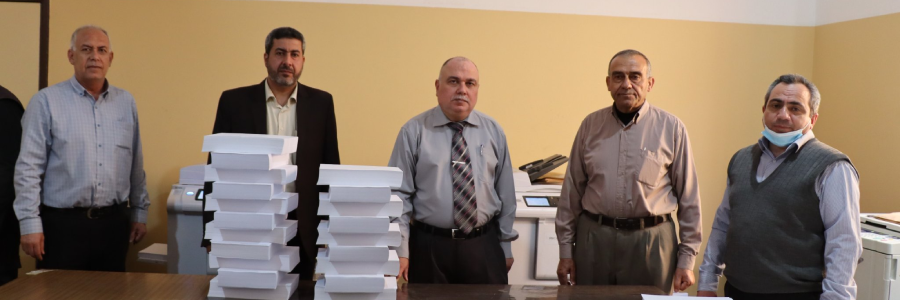 جاء ذلك خلال تفقده برفقة مدير الدائرة الإدارية أ. جواد صالحة، ومدير الدائرة الفنية أ. موسى شهاب، عملية سحب وتجهيز الامتحانات الخاصة بنهاية الفصل الدراسي الثاني من العام الدراسي 2021/2022، بحضور أعضاء لجنة الامتحانات رئيس قسم الامتحانات أ. إياد النونو، و أ. فايز سالم، و أ. شادي الجبالي.