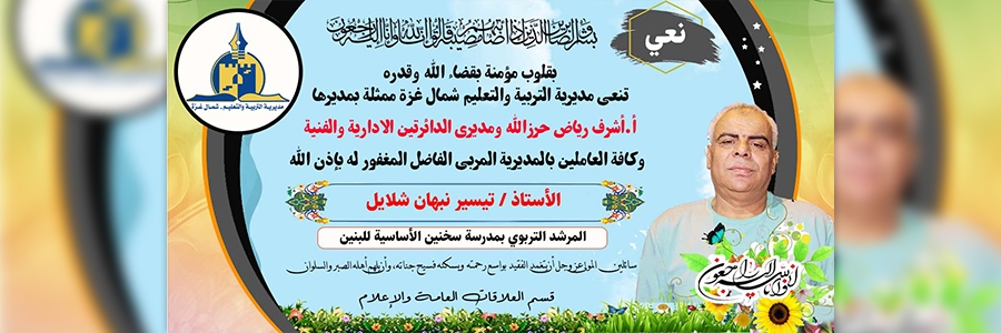 نعي بوفاة المربي الفاضل/ أ. تيسير نبهان شلايل