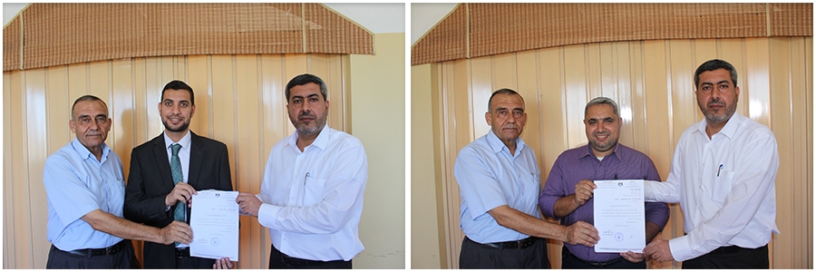 سلّم مدير التربية والتعليم في شمال غزة أ. أشرف حرز الله، ومدير الدائرة الإدارية أ. جواد صالحة، ومدير الدائرة الفنية أ. موسى شهاب، مدراء المدارس الجدد كتب التكليف، متمنين لهم النجاح والتوفيق في أداء رسالتهم التربوية.