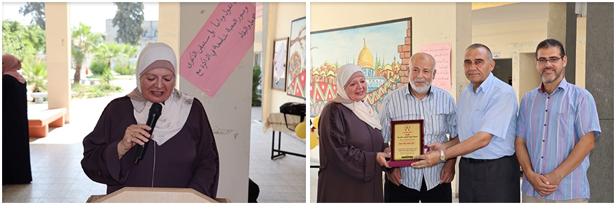 جاء ذلك خلال الحفل التكريمي الذي أقامته مدرستها بحضور مدير الدائرة الفنية أ. موسى شهاب، ومشرف العلوم الحياتية أ. إبراهيم إدعيج، ومسؤول نقابة المعلمين في شمال غزة أ. محمد صلاح، ومديرة المدرسة أ. بثينة المدهون، ومعلمات المدرسة، وعدد من مديرات المدارس الحاليات والمتقاعدات، وذوي المحتفى بها.