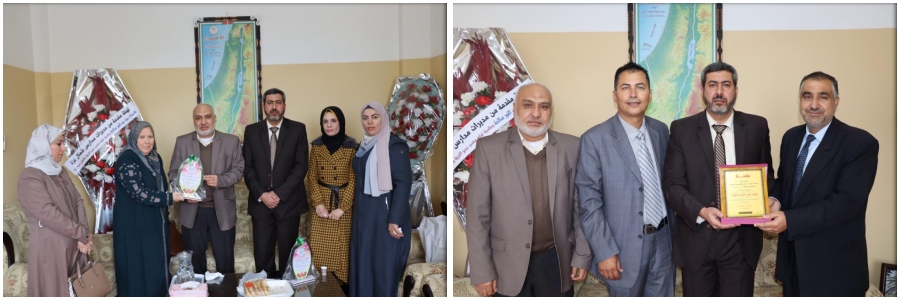 وفد من مدراء ومديرات ومعلمي مدارس شمال غزة يقدم التهنئة للأستاذين "صالحة" وأبو هربيد" بمناسبة توليهما منصبيهما الجديدين بمديرية التعليم في شمال غزة