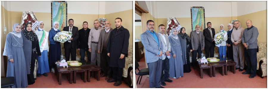 بدوره، نقل الوفد الزائر تحيات وتهاني مديرة المدرسة أ. وفاء مسلم، لـ أ. صالحة، و أ. أبو هربيد، مع خالص الدعوات لهما بالسداد والرشاد بما يخدم العملية التعليمية.
