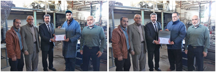 كرّمت مديرية التربية والتعليم في شمال غزة، موظفيها العاملين في ورشة الحدادة التابعة لقسم الصيانة، وذلك لدورهم في إنتاج وصيانة العديد من المشغولات التي تخص العملية التعليمية، وكذلك إنتاج العشرات من الأسرة لوزارة الصحة خلال أزمة كورونا.