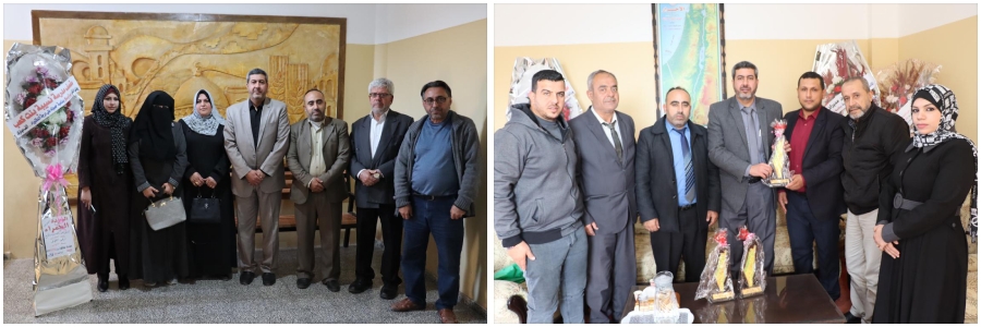 وكذلك قدمت الوفود التهنئة لرئيس قسم الصحة المدرسية د. ميسرة عوكل لحصوله على درجة الدكتوراة.