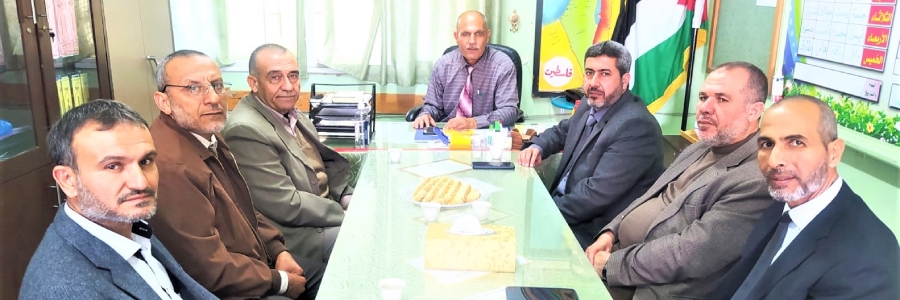 تفقد مدير مديرية التربية والتعليم - شمال غزة أ. جواد صالحة، سير العمل في مدرسة عوني الحرتاني الأساسية للبنين، مقدماً لمديرها أ. وليد عبد القادر، التهاني بمناسبة العودة سالما ً لأرض الوطن ولعمله بعد رحلة علاج في جمهورية مصر العربية تكللت بالنجاح.