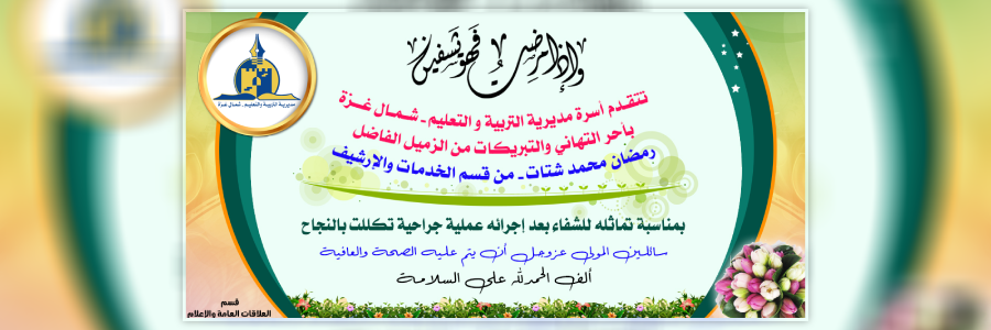 تهنئة بالسلامة من الزميل رمضان شتات بعد تماثله للشفاء