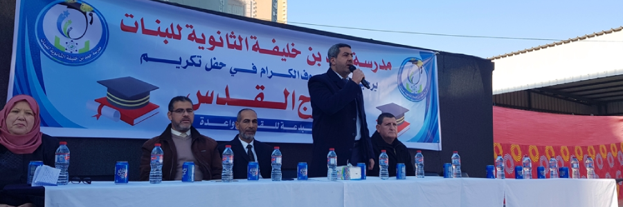 شاركت مديرية التربية والتعليم في شمال غزة، في حفل تكريم "فوج القدس" للطالبات المتفوقات بمدرسة "حمد بن خليفة الثانوية للبنات"، في امتحانات نهاية الفصل الدراسي الأول من العام الدراسي (2022/2023).