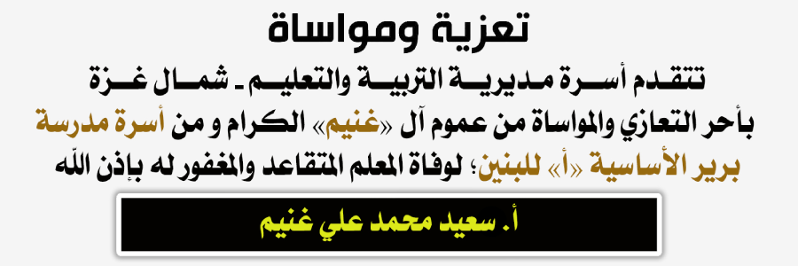 تعزية ومواساة لوفاة المعلم التقاعد الفاضل/ سعيد محمد غنيم