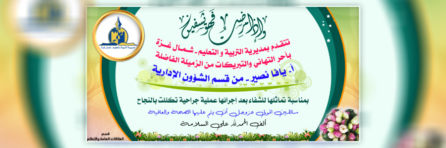 تهنئة بالسلامة للزميلة الفاضلة/ يافا نصير لتماثلها للشفاء